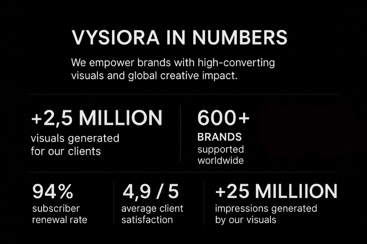 Vysiora est un studio spécialisé dans la production de visuels générés par intelligence artificielle pour les marques e-commerce.